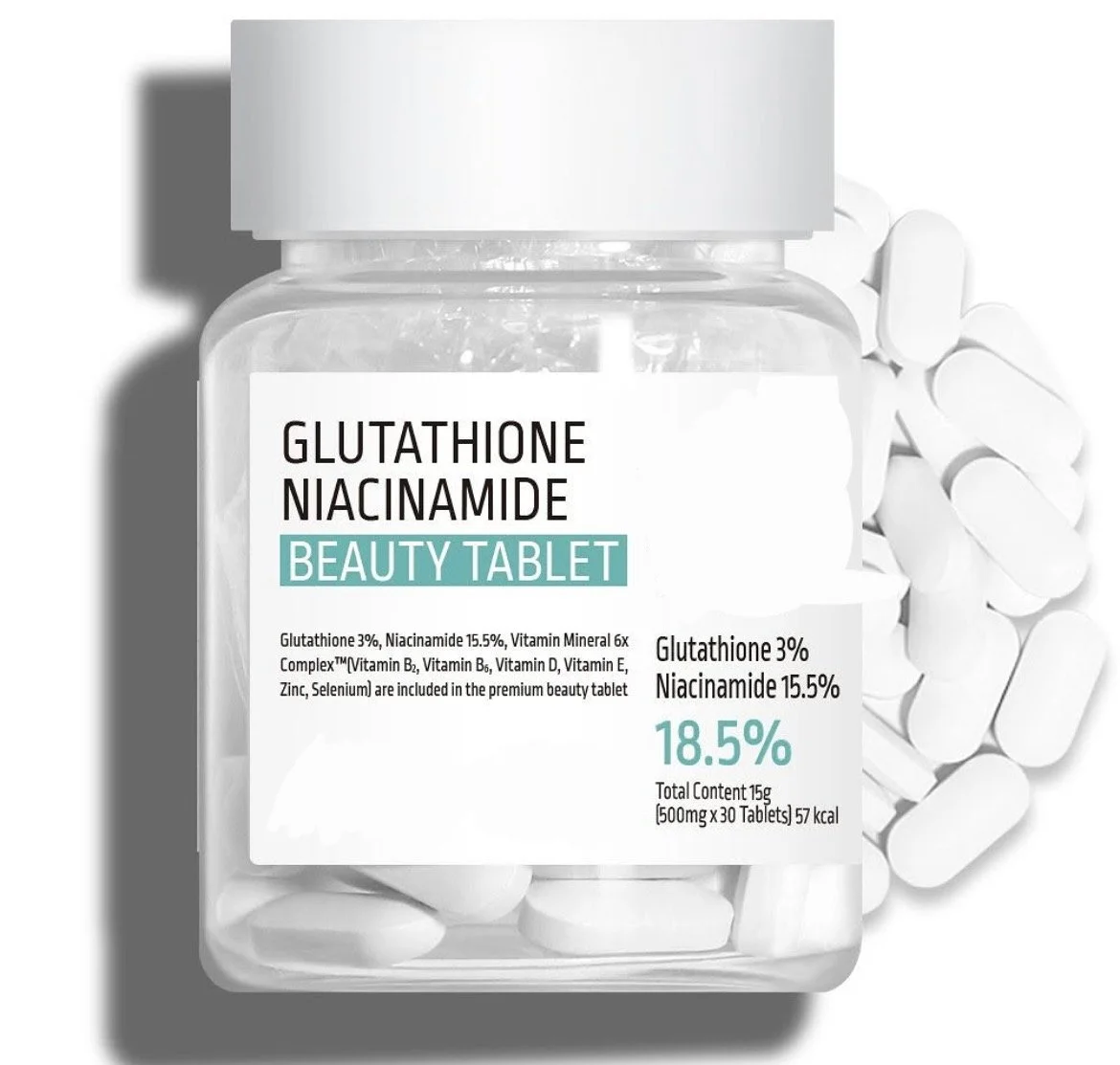 Our premium beauty tablets are formulated with 3% Glutathione, 15.5% Niacinamide, and a 6× Vitamin & Mineral Complex™ to support brighter-looking skin, improved tone, and overall cellular protection from within.*